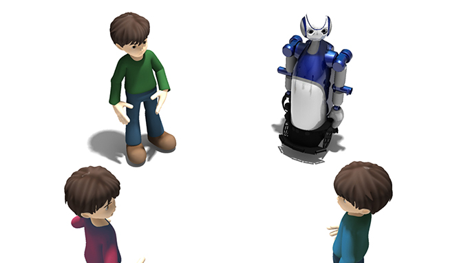 ROBISUKE(ロビスケ)は、人と自然な会話が出来るロボットを目指して開発されています。人同士の対話では無意識のうちに自然に行われるターンテイキングを目指しました。